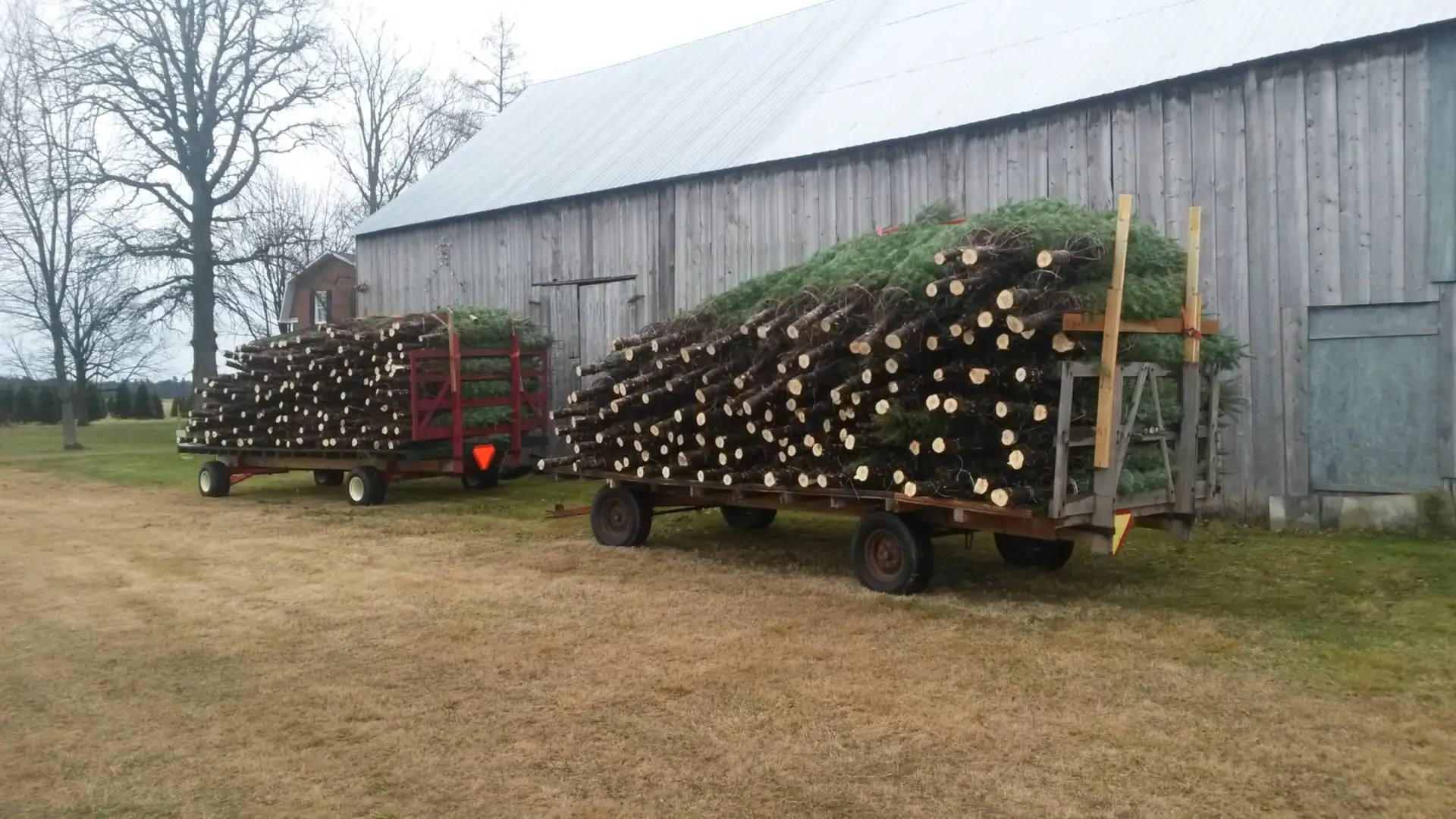 Nous coupons le plus tard possible pour maximiser la fraîcheur, et entrepose les arbres emballés, dans une grange froide, qui conserve la fraîcheur. Nous avons des arbres de 4 pieds à 11 pieds, prix de 40$ à 200$. Nous serons ouverts les vendredis ainsi que les fins de semaine. De plus, je suis généralement là pendant la semaine, appelez-moi pour confirmer.